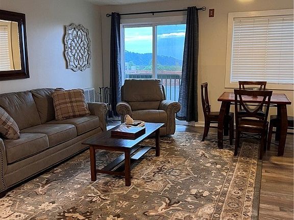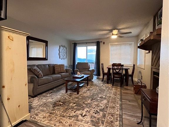 This is a mountain gem that you don't wan to pass up. As you can see in the picture the unit is fabulously decorated. This is a turn key unit that has everything you could possibly need. As you walk in your know you are home. The guest bedroom will be on your right, next to it is the bathroom. Continue down the hall, the master bedroom is in front of you with the master bathroom attached. to the left lead into the living room/kitchen area, next to the kitchen leads out onto a small deck. Through the living room lead to the full decks that has long mountain views with beautiful sunsets. This unit is not very far from the All Seasons Center where you can relax in the hot tub or the 2 sauna rooms that are available, maybe take a plunge into the swimming pool available here. Need a work out they have that covered as well. Water, sewer, cable, phone, internet, and all amenities are included in the $471 monthly fees. 13th and 14th payments of $250 each are collected in April and October for resources and special maintenance. $500 transfer fee to be paid by the new buyer.