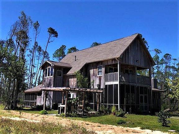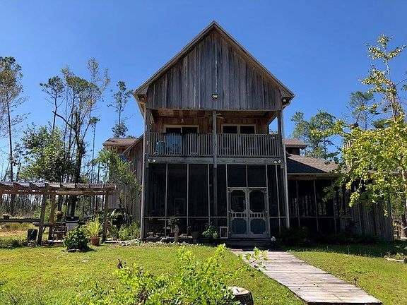 This beautiful 2 bedroom 2 bath cypress home is nested in a private wooded setting overlooking Wetappo Creek. A MUST SEE! Enjoy country style living only minutes to the beautiful beaches of Mexico Beach. The best of both worlds to enjoy fishing, boating, canoeing, or kayaking along Wetappo Creek and the Intercoastal Waterway. This beautiful home features an eat in kitchen with custom cabinets, granite counter tops, and stainless steel appliances. Entertain your guests on the expansive screened porch overlooking the creek which includes a fireplace and plenty of room for outdoor dining. The large master bedroom includes a wet bar and a private balcony. This 13 plus acres includes a separate Bunk house affectionally called "The Bunkie", a workshop, and a pole barn with 30amp RV hookup and additional storage.