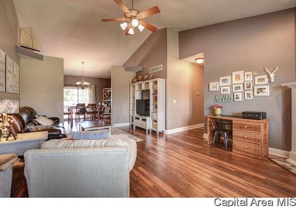 Beautifully maintained ranch on well landscaped corner lot in popular Foxx Creek. Lots to love in this three bedroom, two bath home with large eat-in kitchen with tons of warm toned cabinets. Spacious master bedroom with a master bath that lets in lots of sunlight without letting out your privacy. Beautiful, newer floors in the living and dining rooms with vaulted ceiling that keep the house feeling open and airy. In the finished basement there is a large room that currently includes craft & play areas as well as a TV room and guest bed. A 4th bedroom (w/ egress) has been studded in the bsmt.