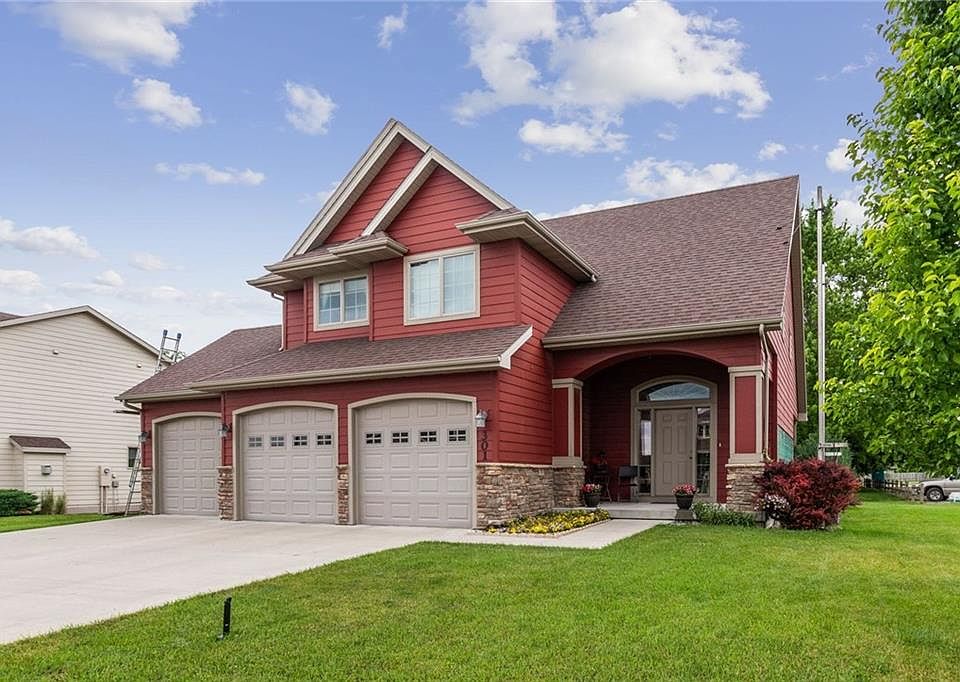 The best of both worlds! You can have the convenience of living in town, close to schools and parks, but you don't have to feel like you're surrounded by houses. This home backs up to the park so what you see is green space, that you don't have to mow. Bonus! This 4 BR, 4 BA home with curb appeal galore, has an open concept main level with a two story vault in the living room that adds to the spacious feel. Kitchen has maple cabinets, island and large eating area. 3 bedrooms upstairs include master suite, additional full bathroom and convenient laundry right where you'd want it. More living space is in the lower level along with 4th bedroom and 3/4 bath. Enjoy sitting outside night or day on the covered back patio overlooking the park. This home has a spacious 3 car garage This home has a spacious 3 car garage and is currently being completely resided with Hardie Plank fiber cement siding.