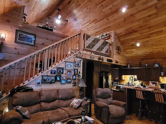 Beautiful log cabin home on 15 acres out in the country with an open concept look. 3 bedrooms, 2 baths, hardwood floors, in floor heat, a new Generac system, master suite and too many extra's to mention. Must to see to appreciate. One car attached garage, with additional 30x40 pole barn with a 10x40 lean too. Pole Barn is mostly insulated with electric, cement floor, wood stove and a 3/4 bathroom. All log furniture is staying with home.