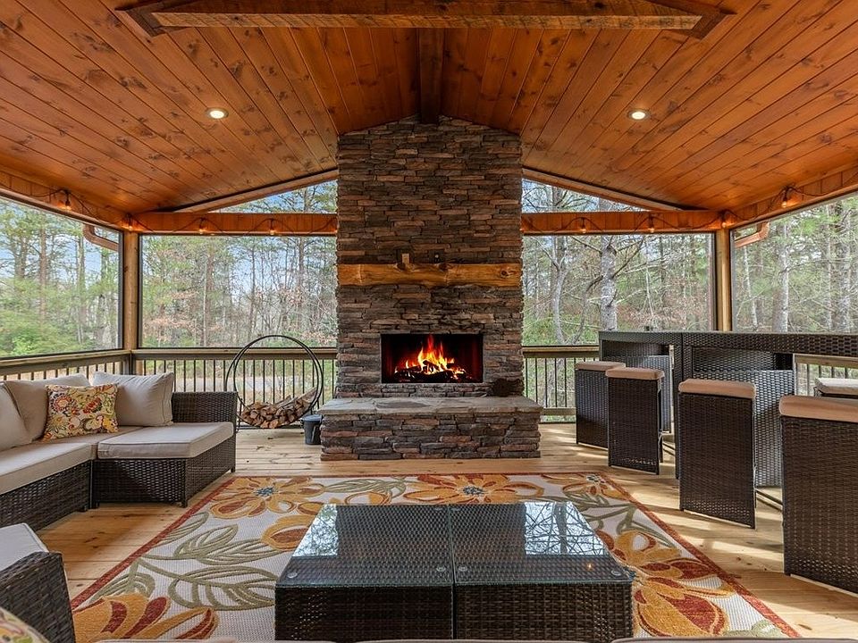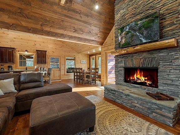 This beautiful craftsman style home comes fully furnished/ turn-key, as shown, and YES!, STR are allowed. This cabin is conveniently located in the beautiful tri-state area. Located within 15 minutes either direction of downtown Blueridge, The Riverwalk Shops on the Toccoa in McCaysville, Rafting on the Ocoee River in Tennessee, or just 20 miles from Harrah's Cherokee Valley River Casino in Murphy NC. This cabin feels like home as soon as you walk through the front door. Whether you are looking for a second home or a rental investment, this cabin can sleep up to 12 ppl as is. This cabin features a large open floor plan, with beautiful vaulted ceilings. A beautiful stone/gas burning fireplace as the focal point. A large fully equipped kitchen with new SS appliances and granite counter tops. An island for extra seating. Dining area with table seating for 8. Enjoy the furnished screened in party deck off the Kitchen with a wood burning fireplace and party lights. Large master suite with spacious master bath with tiled shower, granite vanity and large master closet. The main floor also has a laundry room and 1/2 bath hid behind a beautiful sliding barn door. Go downstairs where there is a second living area with wet bar, 2 bedrooms, full bath, and a bonus area for games with built in bunk beds to sleep 6! A large mechanical room with tons of storage space. Truely a beautiful cabin and a must see!!