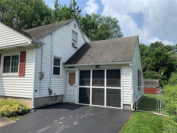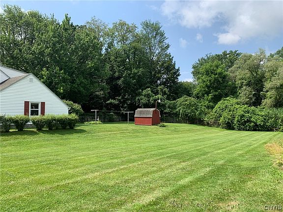 Want a big fenced-in yard!? Check out this original owner/well maintained cape cod home situated on a low traffic street just outside the Village of North Syracuse with NO VILLAGE TAXES. Hard to find HUGE fully fenced-in private double lot. Attached garage w/ screened overhead door area creates a perfect outdoor entertainment space. The first floor of this home features the kitchen with adjoining dining room; living room with a wood burning fireplace currently set up with an electric insert; first floor bedroom/den option with door leading to a large finished three-season room/enclosed porch, and a first-floor full bath. Hardwood flooring under first floor carpeting. Second floor has two additional bedrooms, additional storage closet space and a spacious half bath. Full/Unfinished basement w/ shower stall. Storage Shed. Vinyl replacement windows. North Syracuse School District. Convenient location close to shopping, restaurants, highway and other personal conveniences. **SELLER HAS SET A DEADLINE FOR OFFERS FOR FRIDAY, AUGUST 4th at 5pm**
