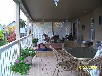 Large 3 bedrooms, 2 bath, 1541 sq. ft., Air cond. Fantastic private covered deck ( 14x36 ) With sunken hot tub and natural gas barbecue. Professional land scaped yard with sprinklers . Beautiful trees ( some fruit ) and shrubs . Large master suite with big walk in closet, bath also a reading area. Out side repainted last year. has not had pets or smokers. Call Johnny Duck at Currieco Real Estate Inc. 541-580-4011 or 541-677-1975