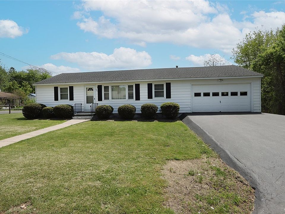 Multiple offers received. Best and final offers due Wednesday may 24,2023 at 6 pm. Thank you. Beautiful flat ranch with hardwood floors, updated full bath that has a walk in shower - wheelchair accessible. Open living room and dining room. Clean walk out basement ready for added living space for those needed more room. Spacious 2 car garage with wheelchair ramp into house. Quiet dead end street bordering Onondaga creek.