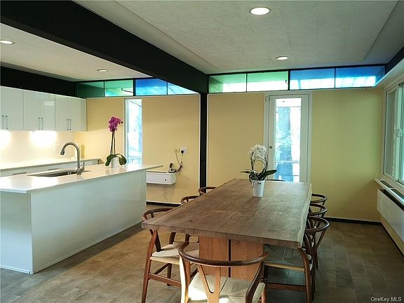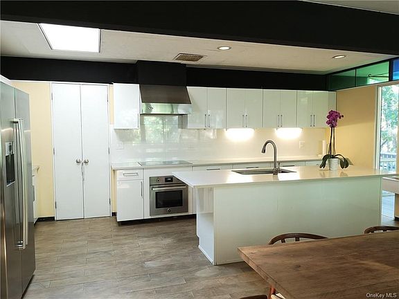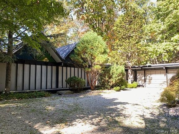 This is a modernist post-and-beam home designed by renowned architect Edward Larrabee Barnes located in Chappaqua. This stunning light-filled modern home is tucked away on a 7.6 acre property with beautiful sunsets and lake-view and offers its owner complete privacy and serenity. A large family room with a cathedral ceiling and triangular stained windows and eat-in kitchen with a skylight and door to the screened porch/deck all overlook the woods and the lake. The master bedroom boasts an ensuite bathroom and a spacious walk-in cedar closet. Two other bedrooms have ensuite bathrooms, and the fourth bedroom is located adjacent to a full bathroom and a doorway leading to the backyard. The large and flexible layout is well suited to today's lifestyles. Close proximity to Whole Foods, easy access to local parks and hiking trails (North county trails, Rockefeller Preserve, Stone Barn),45 minutes from NYC, this property is an ideal location for any winter retreat.