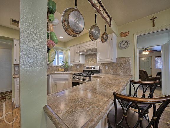 This turnkey home located on a corner lot provides the perfect set up for 2 families. With 2 homes on 1 lot live in the front house and move Mom and Dad into the back or vise versa. The front house offers 3 bedrooms and 2 bathrooms, indoor utility room, living room with a rock fireplace and a separate den area. The front house provides newer dual pane windows, newer roof, AC, wood laminate flooring and a gourmet kitchen with tile counters, stainless steel appliances and and a breakfast bar. The 2 bedroom 1.5 bath back house offers Tile plank flooring, an open kitchen with granite counters, large living room and a cute patio. Both homes have their own parking and private yards. The grounds of this property are well manicured and is on .30 acres.