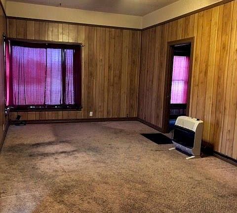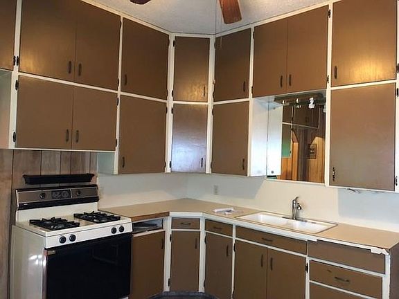 Nice two story starter home or investment property. Two bedroom and one bath, large living room, kitchen with lots of storage. Outside there is a storm cellar, storage shed and a dog run. This home sits across from a park and a school.