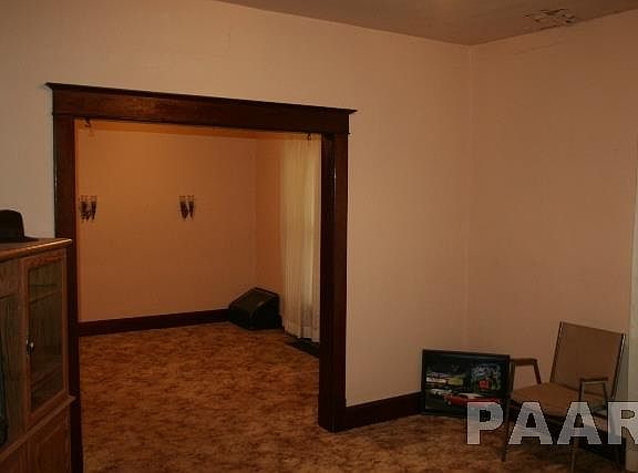Affordable small town living. Why pay rent when you can own. 2 bedroom 1 bath home with some hardwood floors. Two lots for plenty of outdoor space. 18 x 24 detached garage. Large front porch overlooking the farm field across the street and rear enclosed porch/mudroom on this corner lot.