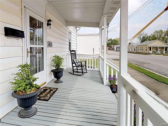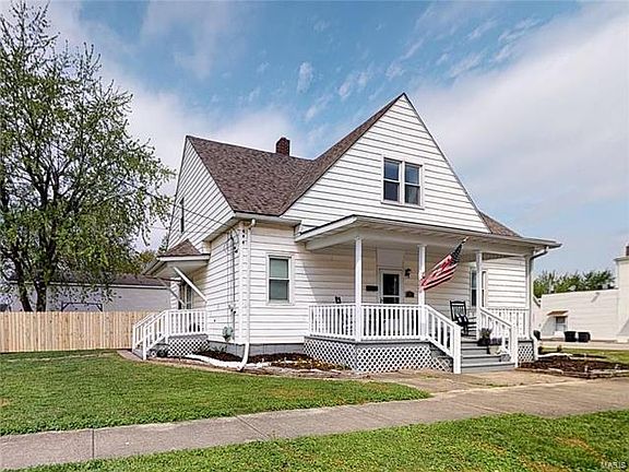 Move in ready home in the heart of the beautiful, small town of Trenton, Illinois. Come love the charm of yesterday with all the modern updates and remodel work you want in a home. Located on a corner lot with a beautiful covered front porch. Main level features 9 1/2 ft ceilings and all new flooring and paint. Main level master has original pocket doors, and an added walk-in closet. You love the convenience of the Jack N Jill style full bathroom with a separate tub and shower that also serves as a main level laundry, with washer and dryer included. Spacious and fresh feeling kitchen with new stainless steel appliances and entry to the side porch and back yard, with a brand new wood privacy fence. Upper level has 2 additional bedrooms and new 1/2 bathroom too with fresh paint throughout. One of the bedrooms features a large sitting area for great flex space. Easy access to clean basement from inside or outside the home for extra storage. Garage is sold in as-is condition.