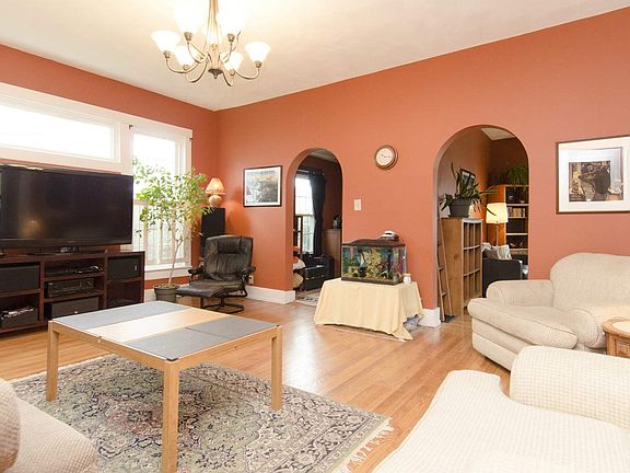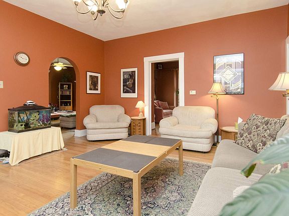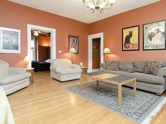 This beautiful home is full of one spacious room after another, and the location can't be beat. The high ceilings and awesome hardwood floors throughout the first floor make the rooms feel even larger than these dimensions: 18x15 living room, 15x15 family room, 13x13 dining room, 13x13 guest room with attached bathroom (or make it the master suite!), large front foyer, large kitchen with 5-seat island, laundry room, and additional half bath. The carpeted second floor contains 4 additional bedrooms, a full bathroom, and a small storage room. A large wooden deck is outside the back door, connecting the house to the oversized 2.5-car garage, which has a huge loft for storage or additional rec activities. Located at the corner of White and New Streets in Champaign, the bus trip to the Illini Union is about 7 minutes, and the walk to Downtown Champaign is about 12 minutes. The cobblestone street and old-fashioned street lamps are very cool. Tenant pays for utilities. Unfurnished.