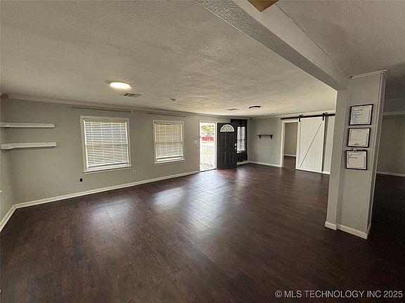 Open Living at its finest! This beautiful home sits ready for entertaining friends! 2 Bedrooms, 2 bath home on a corner lot in Muskogee's Eastside, close to all the amenities but still private. Beautiful laminate floors, nice island, barn door, very modern & easy to decorate. There is also a stainless apron sink in the large kitchen & recently remodeled bathrooms with beautiful tiled showers all that make this home an easy choice. Includes an extra lot in the rear so there's room to spread out or add a shop building for toys. We invite you to come take a look!