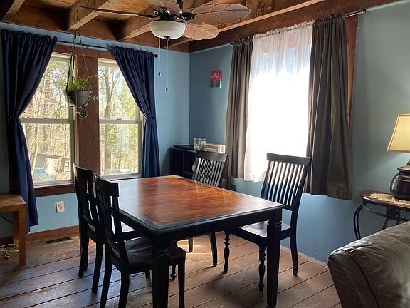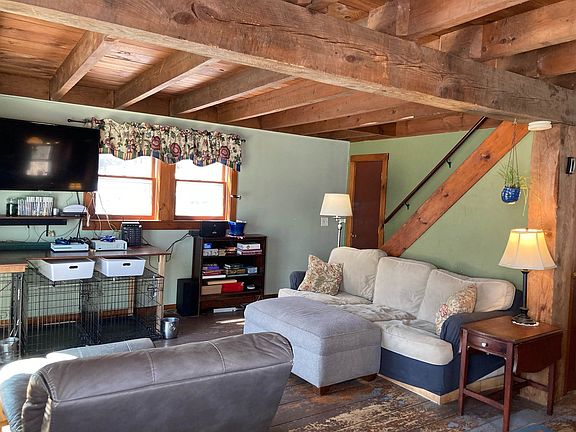 Check out this 2 bedroom single family home in a rural wooded setting. The interior is warm and inviting with exposed beams, deck, first floor office and full basement. The one acre lot is located on a town maintained dirt road North of Putney Village.
