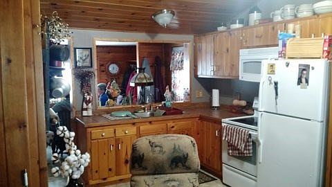 This 2-Bedroom 1Bath year round Cottage has 100ft on the St.Regis River with a oversized inusulated heated 1-Car Garage with a Leanto on the side-also has a small Man-Women cave as well-large storage building with wood storage attached-Cottage has open floor plan with T-G Wood interior-Heated with Monitor-Woodstove a must see-Home sits on Leased Land 99 year Lease for 250.00 a year along with cheap Taxes-Home can come partially furnished.