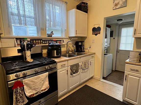 Enter into an enclosed porch area! All new lighting, paint, walls and flooring! Off of the living room you'll find a dining area with beautiful hardwood floors. Your primary bedroom with vaulted ceiling is also on the first floor. The bathroom is remodeled with a tub and surround. Note the loft style stairway in the kitchen. The washer and dryer unit will stay with the new buyer! 2 car garage with a workshop! Parking off alley and behind garage as well. Nice size backyard! Perfect for your fur babies and hosting backyard BBQ! Immediate occupancy is an option for this one! We can get you all settled in before the holidays!