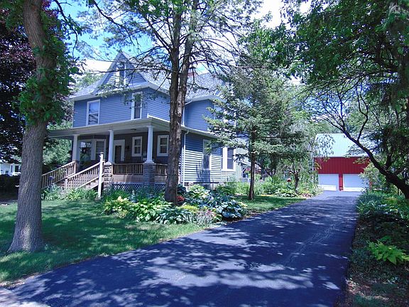 Remarkable single family owner for decades....meticulously maintained, yet maintaining charm of yesteryear. Watch the world go by on the full length, covered front porch. Enjoy the double lot with professional landscaping, something is in bloom 3 seasons. Asphalt drive connects both frontage streets. Carriage barn was converted to 3 car garage, and heated workshop, loft for storage with steel siding and roof. Home has basement, and finished attic. Loads of updates including HVAC, roof, electrical, windows...etc...etc...Laundry can stay in kitchen, or return to basement. Main floor bath remodeled with large step in shower. Original wood work, butlers pantry, open staircase, all the things we love in a Victorian. Hop in your golf cart and visit neighbors. Great little town between Champaign and Bloomington.