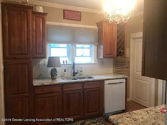 Great starter home! You will love the beautiful updated kitchen and appliances remain. Dining room, living room, 2 bedrooms, updated bathroom, laundry with washer and dryer remaining, enclosed porch /mud room. 2 car attached garage. Partially fenced yard. Beautifully landscaped.