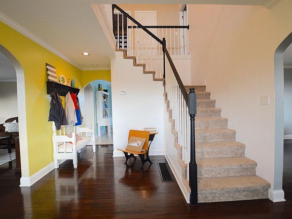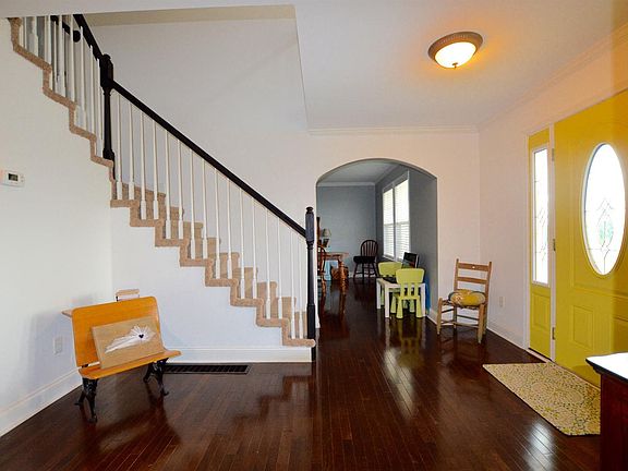 Charming farmhouse style home on a large (1.63 acres) corner lot with a convenient location! This home offers 4 bedrooms (two are masters; one one each level) and 3 full bathrooms! Each bedroom has a walk-in closet! Fully equipped eat-in kitchen offers plenty of space for entertaining guests and has beautiful tiled floors along with the large utility room. Home has a large living room, formal dining room, and a large foyer that is complete with gorgeous new hardwood floors! There's no shortage of space in this well laid out home! The first floor master which is currently being used as a large play room has brand new hardwood and an awesome trey ceiling! Enjoy your view from atop the hill while sitting on your deck or relax on your large covered front porch! Make your appointment to see it today!