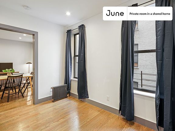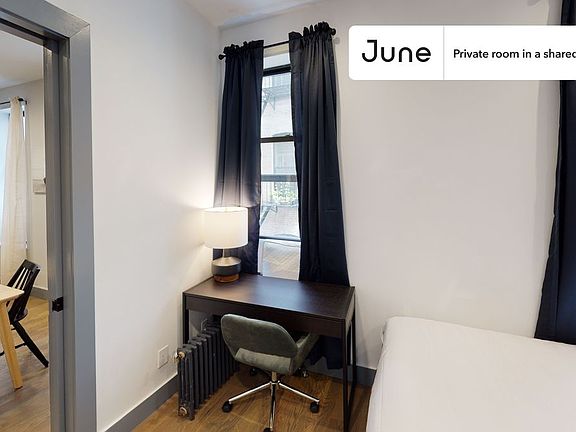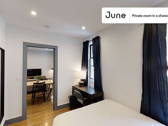 This Queen room in West Harlem is available on a 12 month lease or a flexible short term (31 to 364 days) lease. You pick your custom start and end date. Monthly rent rate is determined by furnishing preference, move-in date and move-out date. Speak to a June representative for recommendations on the best stay duration for the lowest rate.
