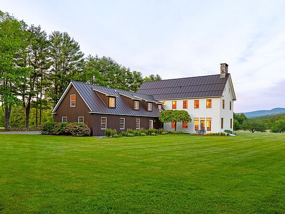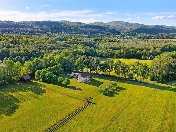 The modern farmhouse on over 43 level, park-like acres with more than half in open pasture and fields, Three Owl Farm offers an incomparable and private setting a quarter mile from the Connecticut River. The interior is open and bright with oversized windows, first floor 9-foot ceilings and French doors that bring natural beauty and light to the home. The open concept great room and kitchen showcases a monumental fieldstone fireplace - ideal space for gatherings and entertaining on a large scale. A first-floor study provides seclusion from the main living area. Four spacious second floor bedrooms include a private master bedroom suite with walk in closet, fieldstone fireplace and full bath, as well as a 2-bedroom suite. The basement includes a finished media room, workshop, and utility/mechanical room with bulkhead. Direct entry to the mudroom and laundry from the attached 4-car garage. This home enjoys views of the local mountains of New Hampshire while the wrap-around farmers porch overlooks conserved land. Stone walls, mature fruit trees and perennial beds grace the yard. An ample two stall barn with hay storage and attached equipment shed abut over three acres of fenced pasture help to complete this property. Originally comprised of three separate lots, the property may allow for future subdivision and development. Recent updates include a new standing seem roof and a Tesla Powerwall backup energy system.