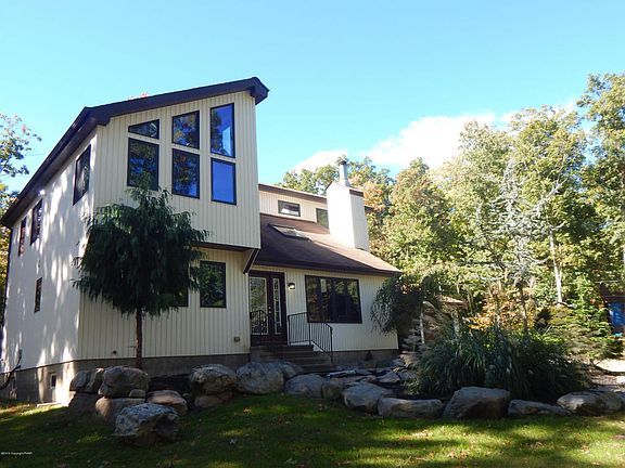 Immaculate contemporary located on over an acre of property. Check out this beautiful home with spacious living room with cathedral ceilings, floor to ceiling windows, and stone faced fireplace. Modern kitchen with stainless steel appliances. Loft area perfect for a reading nook. Inviting master bedroom includes master bath with sunken tub. This home has tons of windows making it easy to enjoy all the Pocono seasons. Central air! Full house humidifier! Full basement and two car garage provide tons of storage space. A true gem!