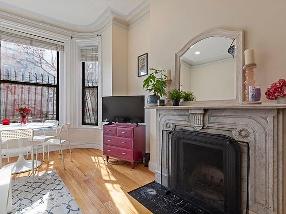 Live with modern amenities and classic Victorian elegance in the historic Hotel Union. This railroad style parlor level condo is nestled in the South End's Eight Streets neighborhood. The living room boasts hardwood floors, a large bay window, chandelier lamp, and a fireplace with an original marble mantle. The sleak renovated kitchen leads you to two equally sized bedrooms, separated by a bathroom with a stackable washer/dryer and jacuzzi tub. The condo features central air. The building is professionally managed. Enjoy living on a prime South End street, just a few steps from The South End Buttery, Formaggio, a grocery store, dog park, and the SOWA arts district.