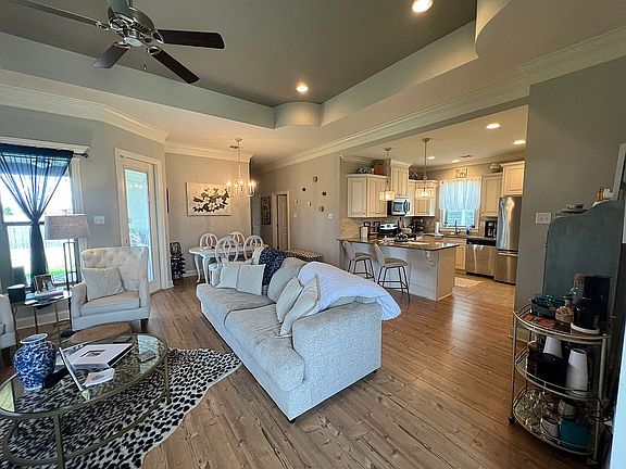 This is a 3 bedroom 2 full bath home on a corner lot in Sawgrass. The living room has an electric fireplace and open floor plan connecting to dining room and kitchen. There is vinyl wood flooring throughout the house with an exception to tile in the bathrooms and kitchen. Beautiful detailed ceilings in living room and master bedroom. Custom built glass shelving in living room and plenty of natural light throughout the entire home. Privacy fence with single door gate on the front end of house and a double door gate on Saw Lake Road. Exterior security cameras. Give us a call to schedule a showing!