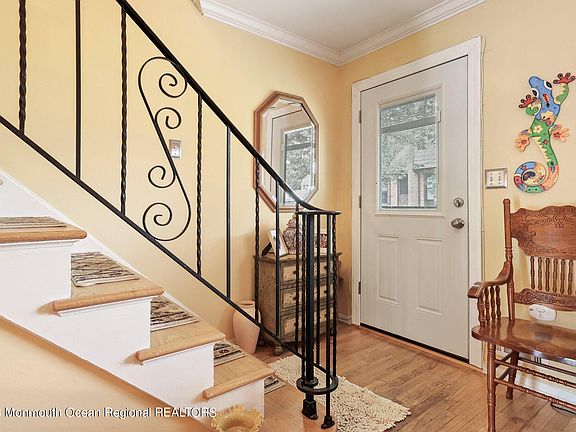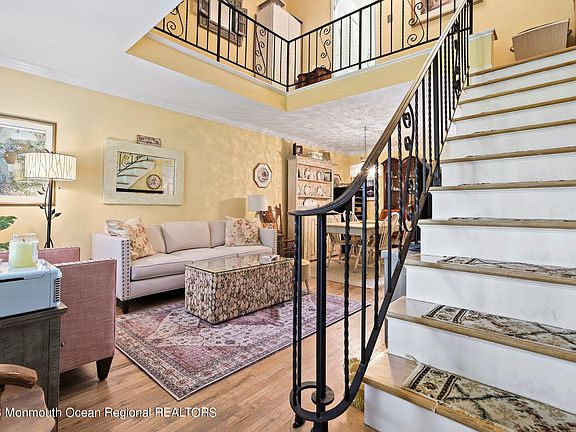 End Unit Townhouse in Hilltop at Red Bank that offers privacy, & 2 parking spaces. Come and see this Modern 2 bedroom 1.5 bath home and fall in love. Soaring ceilings upon entering give a spacious and warm feeling. Features include Hardwood floors throughout. Newer Stainless appliances in your generous size eat-in Kitchen. Updated stylish bathrooms. Crown molding in the Living Room, Dining room & kitchen. Home has newer doors and windows. Second level features a Master bedroom with full bath and 2 closets and a pocket door for extra privacy when guests visit. Nice size second bedroom great for home office or nursery. Immerse yourself in the allure of the town Red Bank, renowned for its vibrant shopping and an array of fabulous Restaurants. Close to train, Ferry to NYC & Beaches.