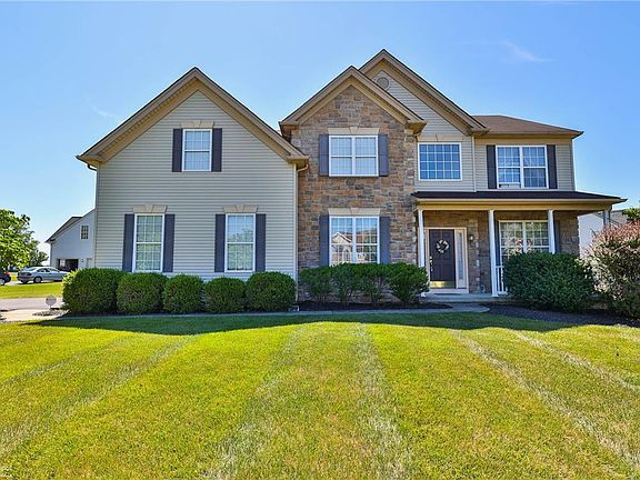 Beautiful Palmer Township Colonial! Built by JT Maloney! Situated on a premium corner lot within Somerset Village! Covered front porch and side entry two car garage! Welcome home inside the two story foyer with hardwood floors and turned staircase! 9' first floor ceilings! Convenient first floor bedroom or office with adjacent full bathroom with shower! Open concept dining room and living room also feature crown molding, wall to wall carpet, and plenty of natural light! Large kitchen boasts an eat at island, cherry cabinetry, Corian counters, and breakfast nook! Glass slider offers views of the rear yard! Spacious family room with wood burning fireplace and wall to wall carpet! First floor laundry and mud room is just off the garage! Second floor landing leads you into the grand master bedroom with en suite full bath! Abundance of walk in closet space is sure to please! En suite is complete with a shower stall, corner tub and double vanities! Three additional bedrooms and another full hall bath complete this floor! Basement area offers room for storage or future theatre room, flex space and more! Zoned heat and central air!