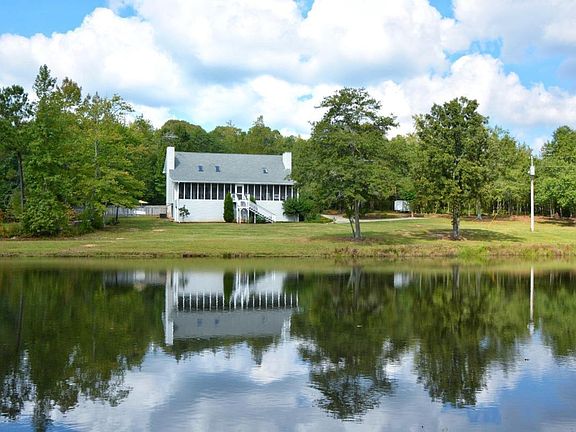 This stunning custom-built home sits on a serene 68.96-acre property and offers three fully finished, upgraded levels ideal for multi-generational living or private guest space. Multiple kitchens and living areas provide plenty of flexibility. The main kitchen features granite counters, a large island, and generous cabinet space. The family room showcases cathedral ceilings with exposed wood beams, and the home includes custom tile showers, a whirlpool tub, a walk-in cedar closet, and a terrace-level craft room. Enjoy beautiful views from the oversized screened porch overlooking two private ponds, open pasture, and hardwoods that lead to a secluded camping area and creek. Outside, an in-ground pool with multi-level decking creates an inviting spot for entertaining or relaxing. The property also includes five garages and a 1256 workshop. The also home offers quick access to I-20.