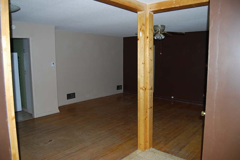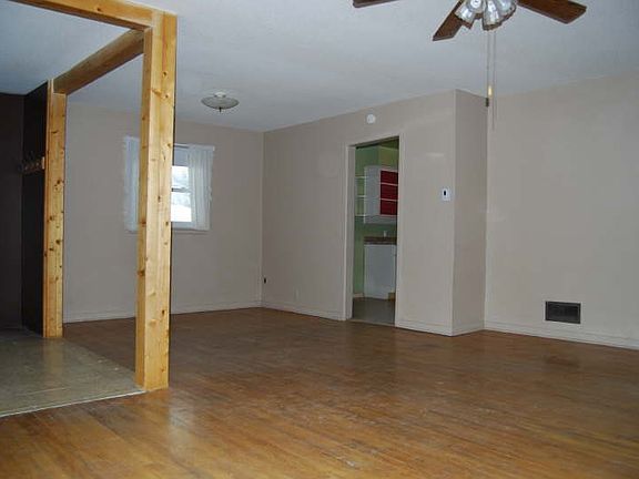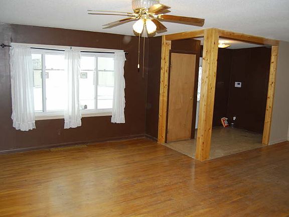 301 Stampede St This home is on a large corner lot with a partially fenced yard. It has three bedrooms up stairs and the possibility of more rooms in the partially finished basement. There is a bathroom on both levels of this home. This home has central air. There is a large and welcoming front room with an open feel that also includes a dining space.