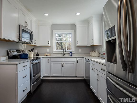 Wow! RARE, recently renovated home on ~2 acres in the Carrboro/Chapel Hill school district! Picture perfect Cape Cod home offers white cabinets w/ quartz countertops, stainless appliances in kitchen. Huge family room with lots of natural light, spacious, secluded master suite upstairs, and enormous basement for all of your favorite hobbies! Covered porch w/side entry, rear deck perfect for grilling and enjoying your picturesque yard with a babbling creek. Sellers have miniature horses and chickens!