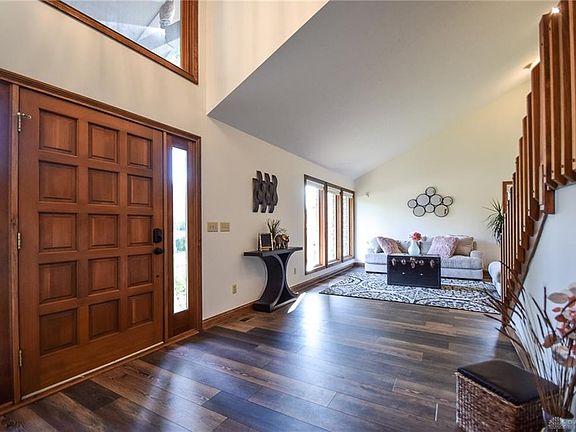 This semi-contemporary home is in impeccable condition with an abundance of upscale amenities. Lower level walkout to a treed lot. There is a large bonfire pit ringed with decorative concrete blocks. The raised deck off the breakfast area gives one a great view of treed back yard. The upstairs hallway overlooks the living room, great room & foyer. Kitchen boast granite countertops, breakfast bar, Jenn-Air 5 burner gas downdraft stove, Stainless steel Whirlpool double convention ovens, refrigerator, & dishwasher. There are 2 gas fireplaces. One in the 1st floor family room & the other in the LL guest bedroom. The LL bedroom has its own full bathroom & 2 large closets. The basement is finished & has space for workout area & TV entertainment area. The hall bath has a new shower, tile, commode & sink with quartz countertop. Master bath has a Jacuzzi tub, new fixtures, commode & flooring. Home has a Rudd high efficiency furnace & heat pump with steam humidifier and WiFi controls.