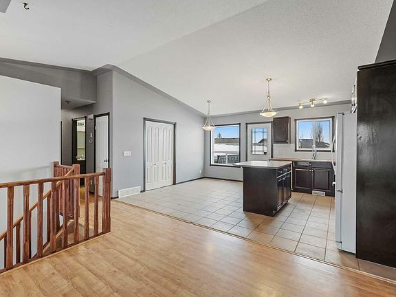 This fully developed bi - level offers over 2200 sq ft of living space which includes 4 bedrooms and 3 baths. An open floor plan boasts a step saving kitchen plus a spacious dining room that easily seats 6 - 8 persons. Access to the rear deck for barbecue season is directly off the kitchen. The large pantry is equipped with hookups for washer/dryer plus there is another set of hookups in the lower level. A family sized living room is brightly lit with natural light through the many west facing windows. Laminate easy care flooring in the main living areas plus tile flooring in the kitchen and baths sets the stage for easy living especially with younger ones and or pets. Vaulted ceilings create a sense of spaciousness in the living room. The primary bedroom and four piece ensuite overlook the quiet rear yard. Two more bedrooms on the main and one more in the lower level makes this is a family friendly home. Tiled flooring and 9 ft ceilings grace the entire lower level. The house is equipped with in floor heat on both levels. A massive family room and recreation area plus a three piece bath complete the lower level with it's private access entrance. A private rear yard with some mature landscaping offers lots of privacy on this corner lot. An oversized detached garage (27'8" x 21') with a 9'10" x 16 ' door with a 13' ceiling, will easily accommodate a car lift and is also equipped with in floor heat. The parking pad is ideal for your RV. Located within walking distance to all levels of schools with easy access to shopping and main roadways. Quick possession is possible. This home is sold "as is".