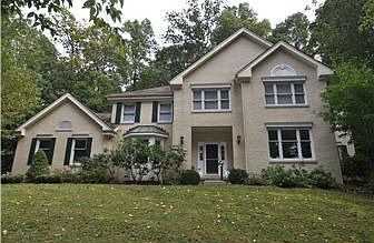 2 story Colonial with brick front, vinyl siding, 4 bedrooms, 3.5 baths. 2 car attached garage, situated on 4.3 acres of private wooded lot with stream. Hardwood flooring throughout. 1st floor: Updated kitchen with custom tile floor, double wall oven, open to breakfast room. Family room with fireplace and vaulted ceilings. 2 skylights. 1st floor study/office. Master bedroom suite with sitting room and 2 walk in closets. Full finished basement with awesome wet bar with refrigerator and lots of cabinets. Recreational/Media room, exercise room, full bath. Bedroom/guest room with closet. 2 additional unfinished rooms for storage and outside entrance through bilco doors to side yard. This is a must see home, not a drive by! Natural gas heat and hot water, public water & on site septic. Stone walkway to gazebo & pond.