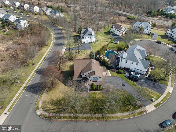 Experience luxury living at its finest in this lovingly maintained home in Bucks County in the sought-after Estates of Hickory Ridge on a corner lot in a cul-de-sac. Located within the prestigious Central Bucks School District, this fantastic property offers 4 bedrooms, 3 full baths, and 1 half bath across 3,513 square feet, with an additional 1,200 square feet in the fully finished walkout basement. As you step inside the front door, you are greeted by a grand 2-story entranceway and turned staircase, setting the stage for the elegance and thoughtful design throughout the home. To your left is the sunken living room with vaulted ceiling and bay window with alcove. Continue on to the expansive dining area with solid wood floors that has plenty of space for an oversized table, perfect for hosting large gatherings. The heart of this home is the spacious eat in kitchen, which boasts oak floors, tons of cabinetry, and a center island with breakfast bar. The sliding glass doors off the table area not only allow for loads of sunlight but access to the second story deck with steps to the below patio and rear yard. The kitchen flows seamlessly into the 2-story family room which features a corner gas fireplace, tiled hearth, and custom built-ins. Off this room is a double door entry to a private office/study, ideal for those who work from home. A powder room and large laundry room finish off this level. Upstairs, the primary bedroom is a true oasis, offering a tray ceiling, multiple closets, and a dual-sided ensuite bathroom with soaking tub, dual entrance shower, and built in heaters to stay extra warm in the winter months. Three additional, impressively sized bedrooms with ample closet, plus a full hall bathroom with tub/shower combo complete the upper level. The fully finished walkout basement is a standout feature of this home, offering an additional 1,200 square feet of living space. It’s the perfect setup as an in-law suite or for a multi-generational family, or even just for additional entertaining space. There is a full kitchen with breakfast bar and overhead pendant lighting, recessed lighting throughout, a separate room that could be used as a bedroom, and a full bathroom. The main living area in the basement features a surround sound system, perfect for movie nights, plus a separate unfinished area for all your storage needs. This lower level has separate heating and cooling so you can control your own temperature aside from the rest of the home. This is really like its own private apartment. Step out the sliding glass doors onto the beautiful large paver patio creating a seamless indoor-outdoor living experience. This home has been meticulously maintained by its original owners and boasts several upgrades, including a newer roof (2016), fresh paint throughout (2023), newer hot water heater (2020), resurfaced driveway, and security system. Conveniently located near Doylestown Borough, Montgomeryville Mall area, and major routes 202 and 309, this home offers the perfect combination of luxury, comfort, and convenience. Don't miss your opportunity to own this exceptional property!