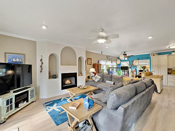 STOP THE CAR! Your dream beach house is right here! Sitting pretty on over 1/2 acre and walking distance to the beach, this 4 bedroom, 3 bath home is pure coastal living with a wood burning fireplace, updated flooring, etc. Listen to the ocean waves from your screened in balconies, or while hanging out underneath at your own tiki bar or relaxing in a hammock. Let the tranquil sounds of the trickling water feature wash away any stress. There's a huge storage room underneath, as well as a separate garage/workshop for your coastal toys, along with the cutest playhouse for the kids! The convenient lift makes life so much easier. The lawnmower remains and some furniture is negotiable. Don't waste a second - Call today to schedule your private showing.
