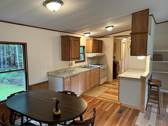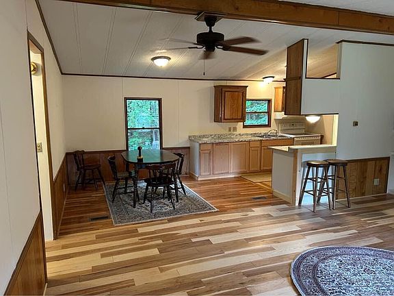 This 3 bedroom, 2 bath home has been recently refreshed with new flooring, baths, kitchen and more. Move in ready, the property is located close to downtown Belfast, on 40+/- acres. This land goes all the way back to Goose River. Home sits nicely back from the road, offers city water, private septic, a new forced hot air furnace, new skirting and more. Spacious inside with an open kitchen, dining and living room floor plan. The master ensuite is on the opposite end of the 2 guest bedrooms and 2nd full bath, offering nice separation and privacy. Laundry room is just off the kitchen. Ample storage with good closets. On a slab foundation with tie downs, this home should go FHA, VA and conventional financing. Don't delay, properties and homes with 40 acres and river frontage is not easy to come by in Belfast. only 10 minutes to the downtown. For you work at home folks, Spectrum internet and cable are available here. This is agent owned.