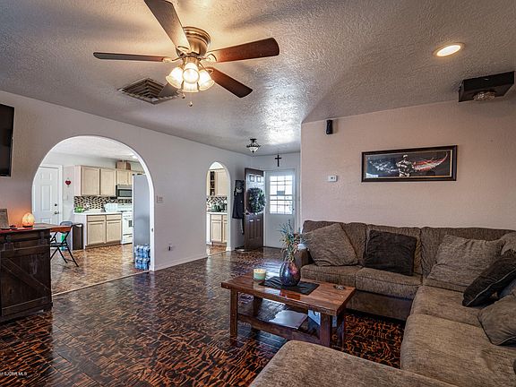 A white picket fence and cute covered patio welcome you to this home. Looking for an attached garage, large corner lot with irrigation (per seller) and extra space for parking in an established neighborhood? You've found it! Walk in and you'll notice the unique burnt wood flooring, several arch ways and a large kitchen and dining area. This adorable 3 bedroom 2 bath home is waiting for a new owner!