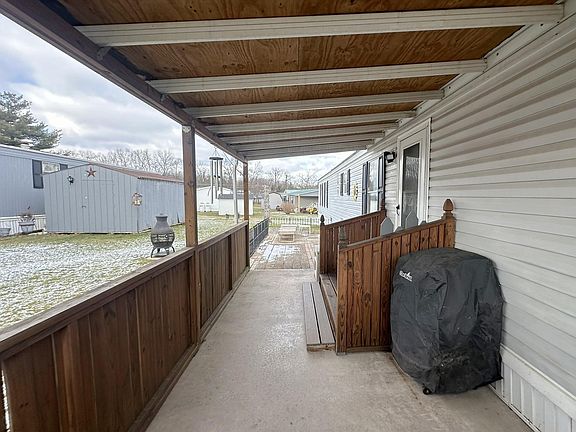 3 bedrooms, 2 full bath, Skyline mobile home in excellent condition includes a large living room, eat in kitchen with a double sink , instant hot water dispenser and large pantry area. The primary bedroom has a walk in closet and primary bathroom with spacious step in shower. The interior has a cathedral ceiling throughout and a skylight in one of the bathrooms. This mobile home has 2 x 6 walls, a new roof installed in 2022, 200-amp Cutler Hammer circuit breaker box, propane forced hot air furnace and central air unit. There is a 12’ x 36’ detached metal garage for at least 1 car and trailer and/or a workshop area with a with a Square D 110 volt electric sub panel box, workshop lights and a 8’6” work bench w/3 drawers. There is also a dusk to dawn light on garage and blacktop driveway for 1 car off street parking. There is a 9’ x 19’ covered front porch and 9’ x 19’ patio all mostly fenced in. Included with the sale: Refrigerator, electric range/oven, electric dryer, washer, Queen size bed, 44’ flat screen T.V., Chiminea in yard area, curtains, blinds, sheers. The monthly lot rent is $390.00 and includes: Sewer, trash, and park road snow removal. IMPORTANT NOTE: This sale is contingent upon sellers purchase of a specific property. Seller will need to rent back to complete transaction.