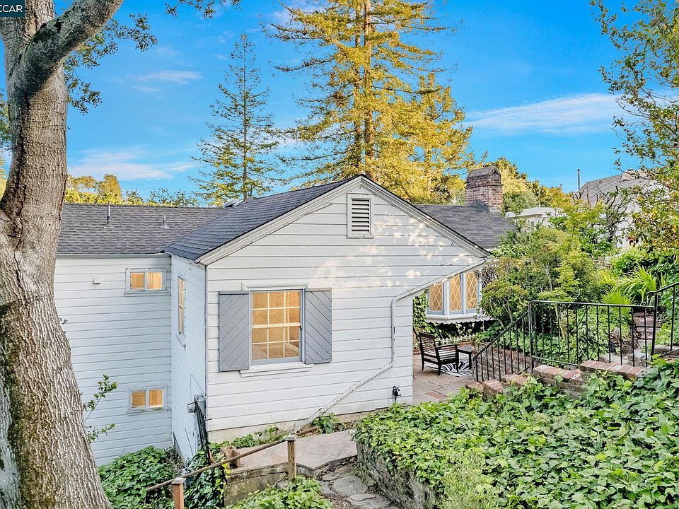 Discover a hidden gem in the scenic Oakland Hills! Nestled amidst Montclair's lush landscapes, this charming cottage-style home overflows with potential and is on the market for the first time since 1966. Its timeless allure and enduring appeal are evident. The house, with its comforting tranquility and warmth, features notable period details such as striking beamed ceilings and a handsome brick fireplace. Gleaming hardwood floors preserve its classic 1930s charm. While some updates are needed, they provide a splendid canvas for adding your personal touch. Downstairs, bonus rooms with a separate entrance serve as potential spaces for an in-law unit, home office, or creative studio. The detached garage and long driveway provide parking and storage possibilities. Outside, towering Oak, Pine, and Redwood trees add to the property's natural beauty. The front patio is ideal for serene morning coffees, while a deck extending from the kitchen invites alfresco dining or summer barbecues amongst rich greenery. Remarkably, this property survived the 1991 Oakland Hills fire, marking it as a symbol of resilience. This home offers an opportunity to create your dream abode in a coveted locale. Its charm, potential, and fantastic location make it an excellent prospect for buyers.