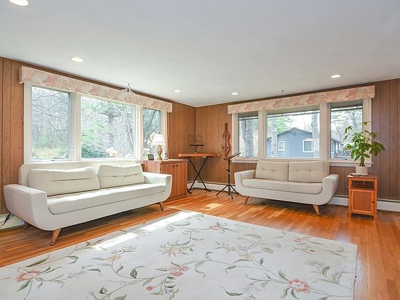 Beautiful Mid Century Contemporary set on a Country Road, 1.4 Acres with Gardens. Amazing spaces, French doors open to 9rooms with a Flexible floor plan. 2 main bedrooms with baths. Open rail stair, a great Kitchen with stainless appliances, Double ovens, island cooktop, Corian, and beautiful natural light. 3 Baths in all. 3 other rooms with closets perfect for bedrooms, a den or office. Lower-level family room with fireplace. This is an original open concept where the Character of the 60’s. Double sided Fireplace, deck, and a 3 Car Garage perfect for a workshop with separate double side entry doors and overhead storage. Minutes to the Acton Train Conservation and Delaney Pond. Fish, Hike, Cross Country, or Kayak. Stow is 23 Miles from Boston, Near commuter routes and minutes to the Acton Train. Known for Golf, Apples, Small Farms, Trails, Lake Boon and the Assabet River, Nashoba Schools and so much more. Welcome Home!