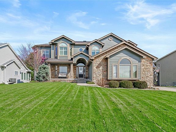 Live the dream in this opulent two-story home located in the esteemed Legacy Golf Course Community. Revel in community amenities like the golf course, pool, clubhouse, and park—all just a golf cart ride away! This home impresses with its architectural uniqueness and stunning landscape design. The interior is designed for luxury to entertain guests, as well as practicality for daily life with its multiple dining options- formal dining, dinette, and island seating. Recently remodeled kitchen equipped with newly updated cabinets, backsplash, quartzite counters and pantry. The home entails multiple cozy living spaces to converse and relax in, family room with a stone mantle fireplace, finished basement featuring a sunken theater room, exercise /flex area, main level library, office in lower level, and primary suite sitting area with another fireplace! Enjoy 5+ bedrooms, including a potential 6th, across 3,301 total square feet of luxurious living space.The primary suite offers ultimate privacy and comfort, complete with primary bath and walk-in closet. Additional comforts include a covered front porch, beautiful stone exterior, second-story laundry, and many more. Outdoor living is enhanced with a newer multi-level deck and patio in a beautifully private backyard, perfect for relaxation. Complete with an oversized heated three-car garage. New appraisal of 592K provided upon request