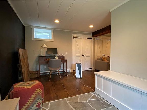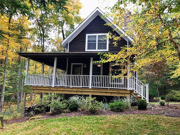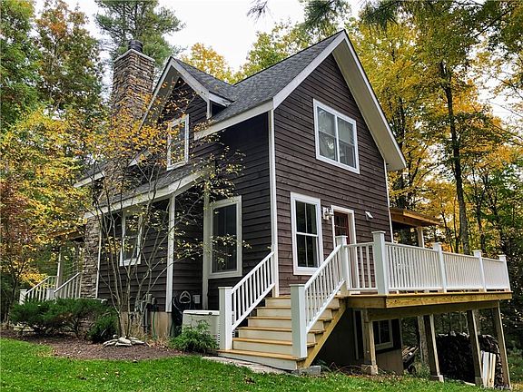Travel down the long driveway encircled in trees and nature to this completely private farmhouse. Inside, the modern farmhouse charm greets you with custom beams and barnwood doors, hardwood floors that gleam from the natural light from the many windows, and a gorgeous stone fireplace making it all the more inviting. The eat in country kitchen makes entertaining a breeze. The two cozy bedrooms and full bathroom are located upstairs. Venture outside onto your wrap around deck and hear nothing but the sounds of nature where you can truly relax. The full/finished walkout basement adds extra living space for you to add a family room, home gym, workshop, or whatever you desire. There's also a two car, heated garage where you can home your vehicles and store your belongings. This home has everything you've been looking for! Located just under two hours from NYC and minutes from the metro north train, making this home great for commuters and long term residents. Call today!