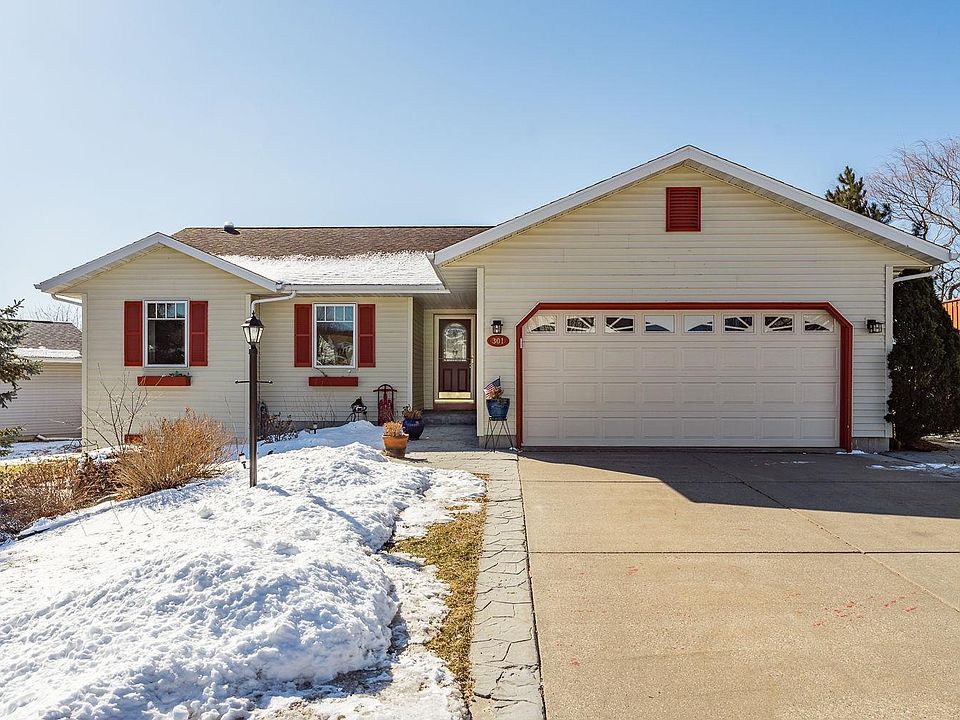 Room to grow! This 4-5 bedroom Ranch home is ready new owners! The open concept kitchen/dining/living area is perfect for entertaining. Functional kitchen has solid surface counters, big island/breakfast bar & pantry. Well-designed floor plan w/vaulted ceilings, Owner's suite, 2 bedrooms & 2 full baths on the main level. Finished lower level offers flexibility w/a big rec room, full bath & 2 bedrooms (1 currently used for workout room). Enjoy your morning coffee or relax w/a glass of wine on the large deck overlooking the fenced backyard. Great storage w/2 car attached garage & 8x10 shed. Updates: roof (2018), A/C system including piping (for modern unit), water heater, 8x10 shed, fence (2021), new flooring in kitchen and LL 5th BR, fresh paint, updated bath fixtures, new landscaping.