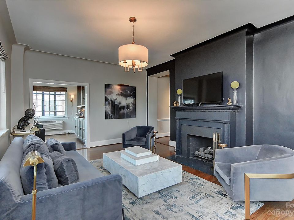 Top floor unit with amazing views of Uptown located in the heart of 4th Ward. Boasts hardwood floors, designer lighting, updated bath and spacious living areas. The living room is open to a charming sitting room with custom wet bar-perfect for entertaining. Elegant dining room with chandelier opens to the living room, kitchen & hallway. The kitchen offers Shaker style cabinets, granite countertops, tumbled stone backsplash & stainless steel appliances. The historic Poplar features a secured building, gated parking, lobby & elevators. Enjoy the rooftop terrace and gated courtyard!