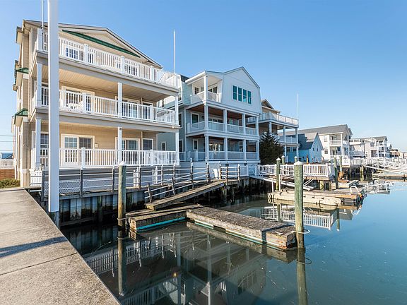 Waterfront canal-side single-family home that was custom built for the owner and never rented, even though it would also make a perfect short-term rental. This property offers access to Wildwood's amazing back bays with two boat slips. It has four decks, including a rooftop deck that provides views of the sunset, sunrise, Ferris Wheel, Grassy Sound, and fireworks. The corner home offers easy access, extra street parking for guests when your driveway and garage are full, and an elevator for convenient access to the top floor. The first floor features a great entertaining space with a built-in bar, a full bath, and a large room that flows out onto the covered deck and docks. The third floor is designed for eating, cooking, and entertaining, equipped with a Viking appliance package and a Sub-Zero fridge. The open kitchen incorporates the dining area and flows out onto the third-floor deck, which is also where the master bedroom is located, providing access to the rooftop deck. Located about six blocks from the beach, you can walk, bike, or use a golf cart to get there. The home offers plenty of room to sleep, featuring five bedrooms and five and a half baths, with three bedrooms having private baths. The two boat slips feature a finger dock measuring approx. 17' long with a 6' wide floating dock and ramp, approximately 12' on the left slip and 16' to the bulkhead on the right side. This home would make a great rental investment. You could sleep as little as ten or as many as 16. Rates would range based on heads in beds from $10,000 to $15,000 a week in season. Easy to show.