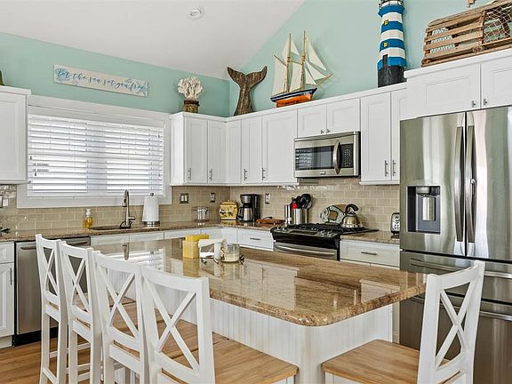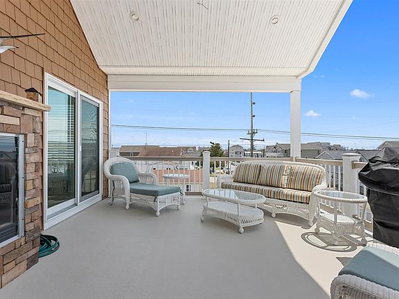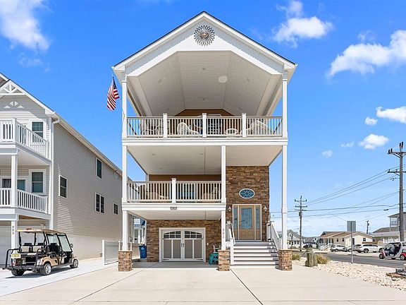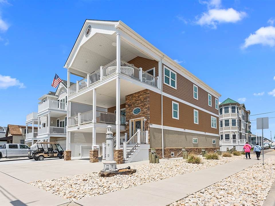 North Wildwood Three Level Single Family Corner Home......simply beautiful outstanding residence having four bedrooms, three and half baths and so much more. The main living level is the top floor with bedrooms on the middle level. Note: There is an elevator shaft for a new owner's future plans. This home faces south with pretty entry foyer leading you on a fascinating Home Tour. The main living level is a "Great Room" design combining living room, dining room and lovely kitchen having a center island with stools. The bright white cabinets are accentuated by the granite countertops, backsplash and full line of stainless steel appliances. There is hardwood flooring throughout complimented by wood stair railings. The Great Room is spacious with gas fireplace and, it's incredible, it's a look through fireplace which is usable on the outside deck too. There are three and a half baths with ceramic flooring. The huge top level covered fiberglass coated deck is simply amazing and also features a gas outdoor fireplace for extended season usage. The middle level below also has the second covered deck. All bedrooms have ample closet space and interior passage doors are raised panel. Ceiling fans and lighting fixtures are all upscale and attractive. Throughout this home there are many special decorating touches such as the variety of wall paint colors in all rooms. The separate laundry room offers extra storage space,lots of cabinets and a handy stainless utility sink.