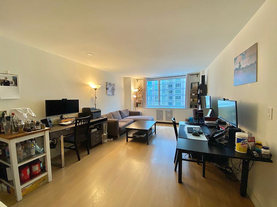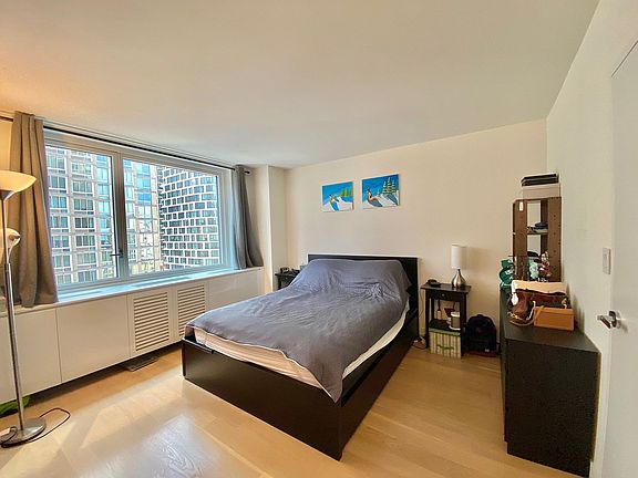 Beautiful one bedroom at luxury doorman building, Located in the heart of Manhattan, Fifty-Third and Eighth Ave. close Central Park, Lincoln Center, MoMA, and an array of entertainment and fine dining. The Apt facing East, extremely bright, wall to wall widows, wall unit AC, hardwood floor. kitchen has sleek white lacquer cabinetry, white quartz countertops, a Bertazzoni gas range, Bosch microwave and dishwasher bathroom features a custom vanity fitted with Kohler fixtures, white marble floors, a stunning mosaic tile accent wall, and a dual flush Toto toilet. The Building amenities including a 24-hour doorman, state-of-the-art fitness center, men's and women's sauna, second-floor garden, rooftop terrace, lounge, kids play room, and laundry room. Location, Beautiful, comfortable, Sweet home.