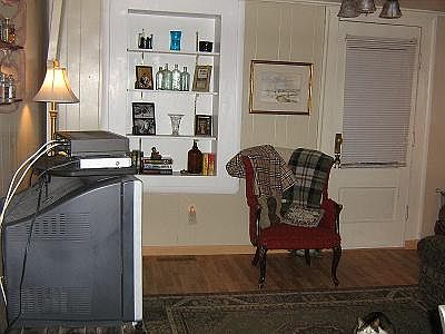 Cute little house with one-floor living. Living room, eat-in kitchen, master bedroom and 3/4 bath down, two low-ceiling bedrooms upstairs. Nice enclosed porch, very small yard. Oversized one-car garage, lots of storage. Vinyl siding. Not much to maintain or heat. If you are looking for a nice little place to call your own, this is the one.